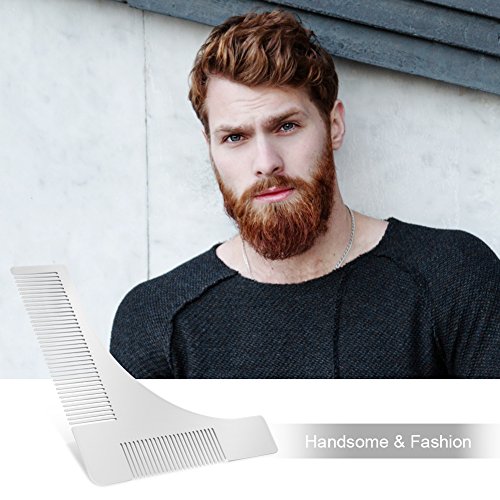 YOHOOLYO Pettine Barba Rasatura Perfetta Taglio Barba Uomo in Acciaio Inox Antistatico Argento