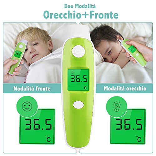 ❤【Doppia modalità】Le modalità di misurazione sono: modalità orecchio e modalità fronte, è possibile modificarle a proprio piacimento. Inoltre, può essere utilizzato anche per misurare la temperatura dell'acqua per il bagnetto, del cibo, del latte per bambini ed altro (come per esempio può essere usato per misurare la temperatura delle donne in gravidanza, anziani e bambini, ed anche per misurare la temperatura di animali, liquidi, ecc.)
