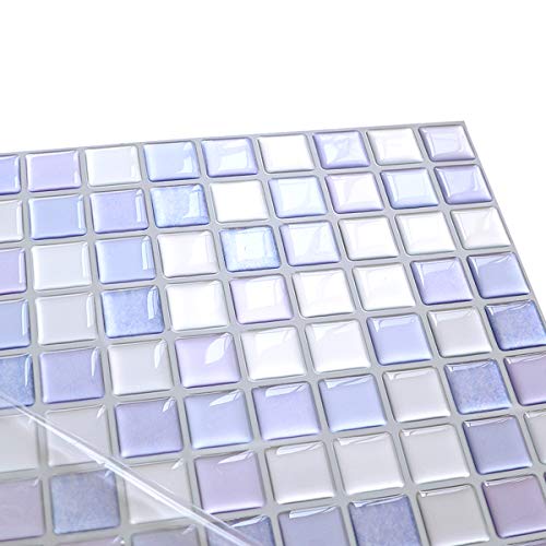 Yoillione Mattonelle Mosaico Piastrelle Cucina Viola, Autoadesivo Mosaico Adesivo 3D Mattonelle Adesive Bagno Piastrelle Adesive da Parete, Impermeabile Vinile Paraschizzi Cucina 4 Pezz