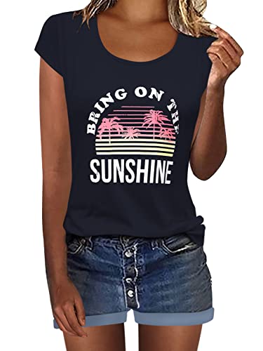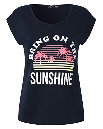 YOINS Donna Maglietta a Maniche Corte Tops Girocollo T-Shirt Casuale Estate da Donne Blu Navy-Sunshine XXL