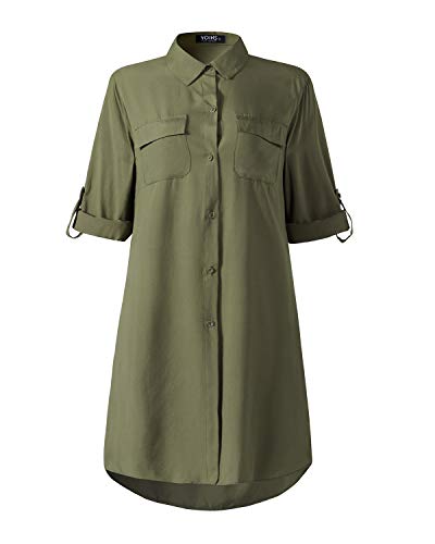 YOINS - Vestito da donna, elegante, abito estivo, lungo al ginocchio, maniche lunghe accorciabili, con tasche A-verde XXL