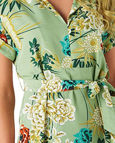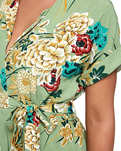 YOINS Vestito Elegante Midi Donna Abito Estivo Manica Corta Scollo a V Abiti Casuale a Stampa Fiore Vestiti Estate da Spiaggia Partito