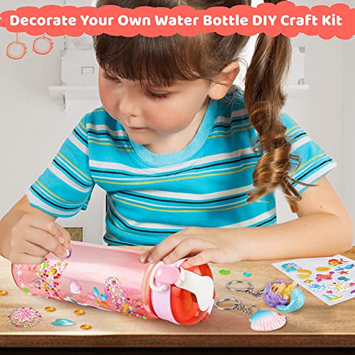 ♥ Borraccia fai da te per bambine - I kit per bottiglie d'acqua per bambini includono 1 borraccia sportiva, 5 fogli di adesivi con strass, 1 adesivo 3D con sirena, 1 borsa per bottiglia d'acqua con sirena, 2 portachiavi. La borraccia sportiva e la borsa da trasporto con tracolla è portatile per i bambini per portare la bottiglia a scuola, sport, attività all'aperto, fitness, ecc.