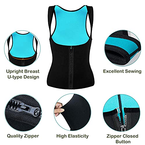 Yokald Tuta da donna effetto sauna gilet con cerniera dimagrante, in neoprene, per fitness, shapewear a compressione, per allenamento Shirt (blu, S)