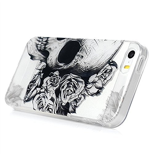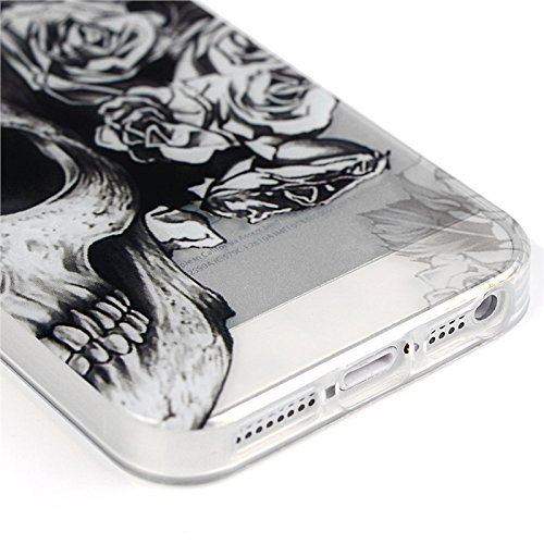 Yokata Cover iPhone 5 / 5S TPU Silicone Custodia Trasparente Crystal Clear Coque Soft Morbido Bumper Backcover Kawaii Cartoon Hülle Strane Case et Ultra Slim Protettivo Cover + 1*Penna Stilo - Cranio
