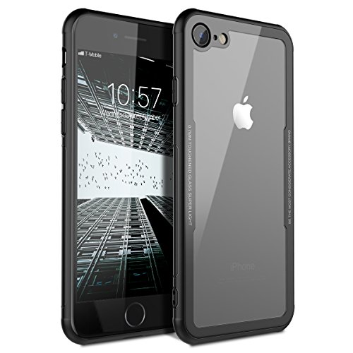 Yokata Cover iPhone 8 / iPhone 7 Silicone Trasparente + Alluminio Vetro Bumper Design Rigido Case Originale Caso Custodia Gel TPU Ultra Slim Antiurto Protettiva Shell per iPhone 8 / iPhone 7 - Nero
