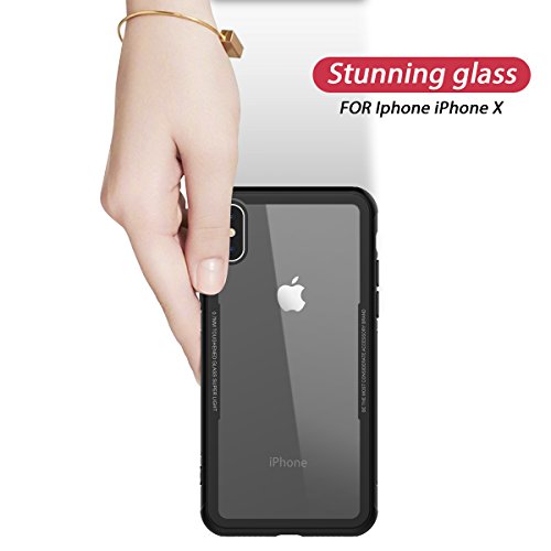 Yokata Cover iPhone X Silicone Trasparente + Alluminio Vetro Bumper Design Rigido Case Originale Caso Custodia Gel TPU Ultra Slim Antiurto Protettiva Shell per iPhone X/iPhone 10 - Nero
