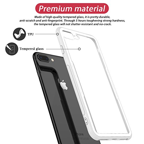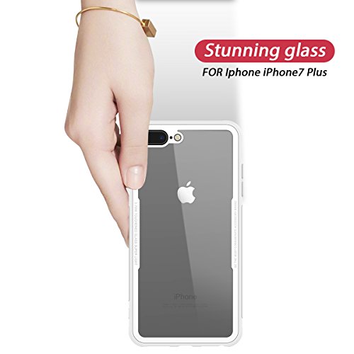 Yokata Cover iPhone 7 Plus Silicone Trasparente + Alluminio Vetro Bumper Design Rigido Case Originale Caso Custodia Gel TPU Ultra Slim Antiurto Protettiva Shell per iPhone 7 Plus - Bianca