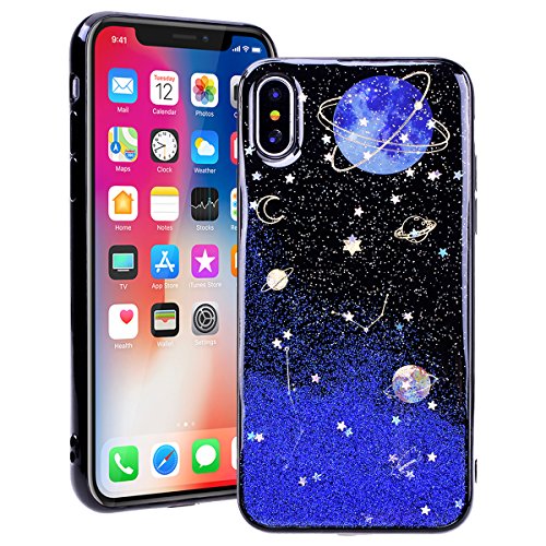 Yokata Cover per iPhone X iPhone 10 Universo Flash Glitter Cambiamento Graduale Custodia Gel Silicone Originale Fantasia Disegno Disegni Ultra Slim Molle Flessibile TPU Morbido Marble Case Protezione Backcover Soft Caso Gomma Rigida Bumper Protettiva Shell - blu