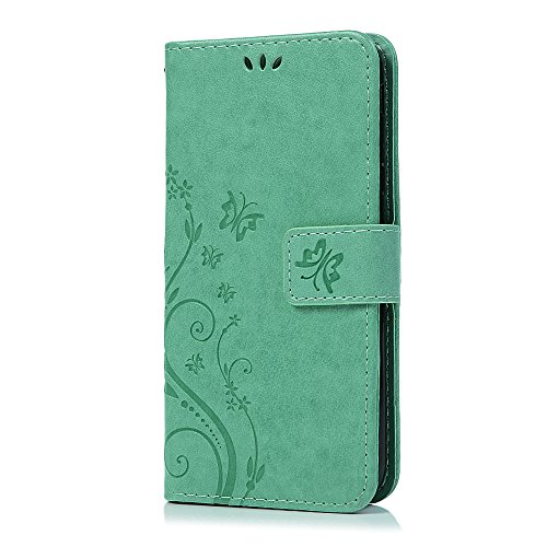 YOKIRIN J5 2017 - Custodia a portafoglio per Samsung Galaxy J5 2017, in pelle PU, con supporto, chiusura magnetica, scomparto per carte di credito, cinturino da polso con farfalla, colore: rosso