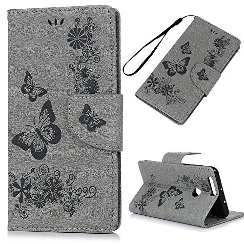 Yokirin Huawei Honor 8 Custodia Flip, Custodia Libro per Huawei Honor 8 Case Cover PU Leather con Il Supporto, Chiusura Magnetica e Slot per Schede/Tasche per Carte di Credito - Disegno Grigio