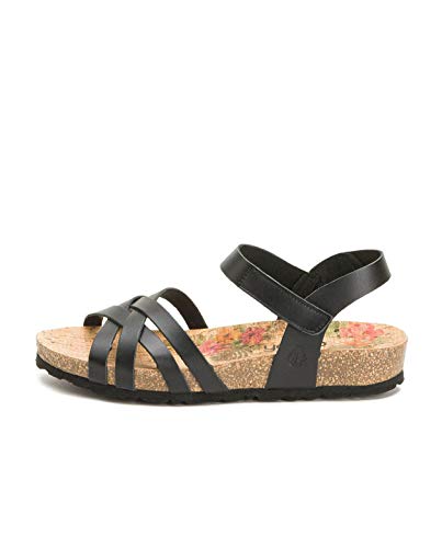 Yokono Isola 007, Sandali piatti da donna in pelle, Nero, 38 EU