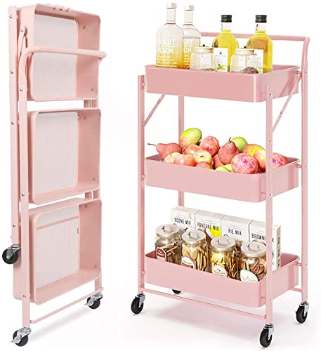 YOLEO Carrello Cucina Multiuso con Ruote a 3 Ripiani, Richiudibile. Rosa