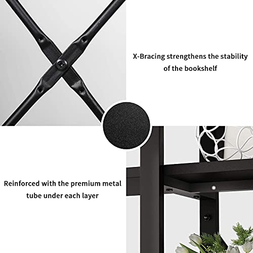 Libreria stabile e durevole: la libreria industriale di alta qualità è realizzata con una robusta struttura in metallo verniciato nero antiruggine e truciolato denso. Con tubo rinforzato sotto ogni tavola, la capacità di peso può essere garantita e rafforzare la stabilità dell'intera libreria.