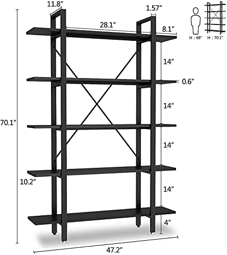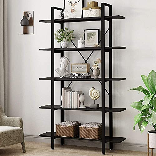 YOLEO Libreria con 5 ripiani, Scaffale in piedi 120 x 30 x 178 cm Libreria industriale per ufficio struttura in acciaio robusto grande Scaffale per ufficio studio soggiorno (Nero)