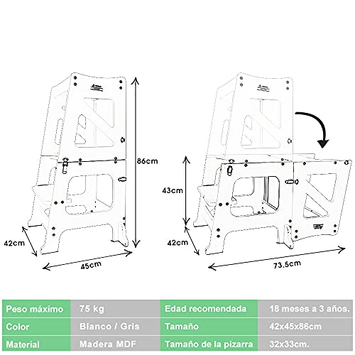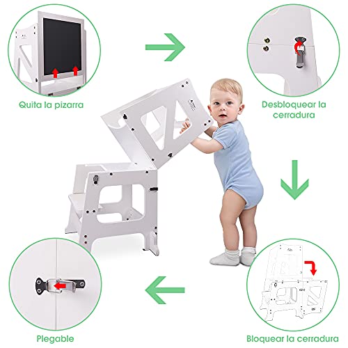 YOLEO Torre di apprendimento Transformer, Torre Montessori per bambini e neonati, pieghevole Learning Tower con lavagna bianca e nera magnetica, bianco - legno (White)