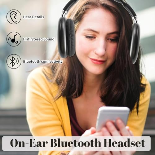 Yolispa Cuffie Bluetooth con cancellazione del rumore Cuffie stereo senza fili per smartphone Laptop PC Home Office Travel - Nero