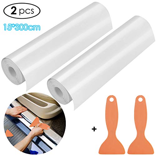 Yolispa Set di pellicole trasparenti per la protezione della vernice, 2 rotoli di pellicola trasparente per vernice da 3 m per proteggere la tua auto da danni alla vernice, regalo gratuito 2 raschiatori (15 * 300 cm)
