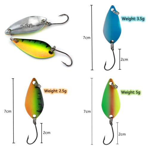 Yolistar Esche Artificiali Trota,12 Pezzi Esche Cucchiaino per Trote 2.5g/3.5g/5g, 2 Pezzi Esche di Plastica-10g