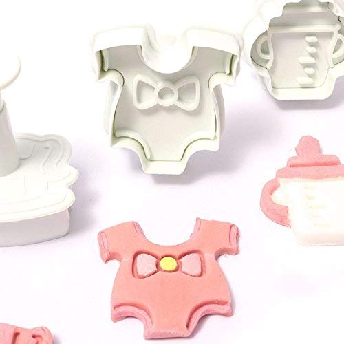 Set di 4 TAGLIAPASTA IN UN tema baby shower (Body (carrozzina, cavallo a dondolo, bottiglia)