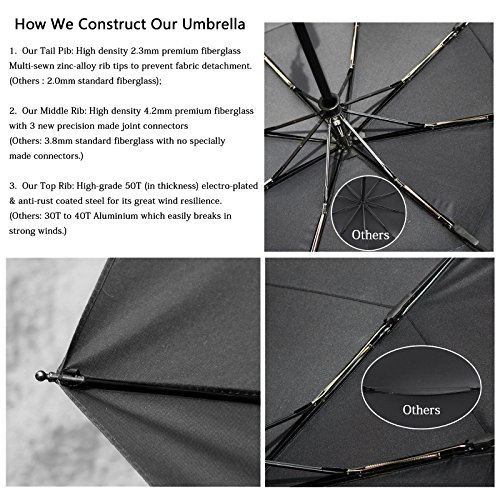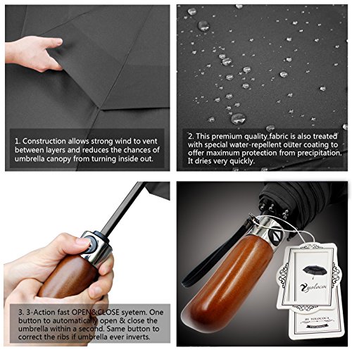 Yolococa Automatic Double-canopy Travel Umbrella Auto Open Close Windproof Compact Rain Umbrella Black Wooden Handle