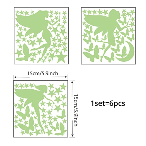 YOMAIDO Adesivi da Parete Fluorescenti Fata, Adesivi Stickers Murali per Camerette Bimbi, Stelle Luminose Personalizzati Sticker Murali Decorazioni Camera da Letto