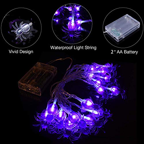 Yompz Stringa di Luci Halloween, 3M 20 LED Luce di Ragno di Halloween, Decorazione di Halloween, Luci Decorative Ragno LED per Halloween, Natale, Patio, Casa (Purpureo)