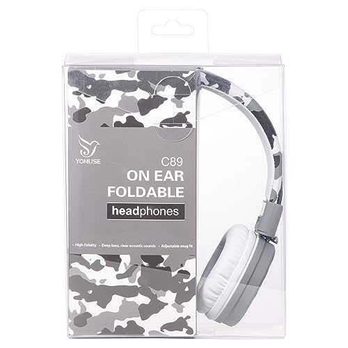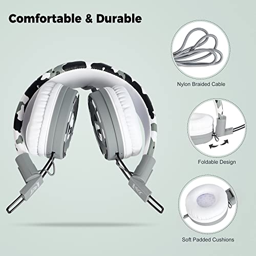 Yomuse Cuffie per Bambini con Microfono, Camo Cuffie con Filo, Pieghevoli, Cavo Aux da 3.5 mm, Cuffie On-Ear per Smartphone/PC/Tablet/TV/MP3/4 (Grigio)