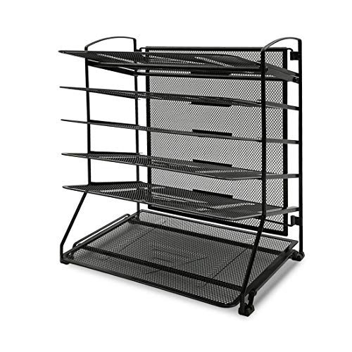 YOMYM 6 Floors Courier Bin Organizer per Ufficio A4 Supporto per Portadocumenti per Documenti Mesh Supporto per File Metallici Wide Version (Nero)