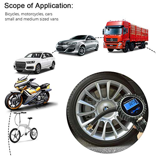 【Letture accurate】 Questo manometro digitale per pneumatici ha un display a LED di facile lettura che ti dà una lettura accurata dei tuoi pneumatici. I manometri digitali per pneumatici aiutano a prevenire i problemi degli pneumatici come la pressione insufficiente e il gonfiaggio eccessivo perché possono testare la pressione dei pneumatici, collegarsi a un compressore d'aria per gonfiare pneumatici bassi e persino sgonfiare l'aria quando necessario.
