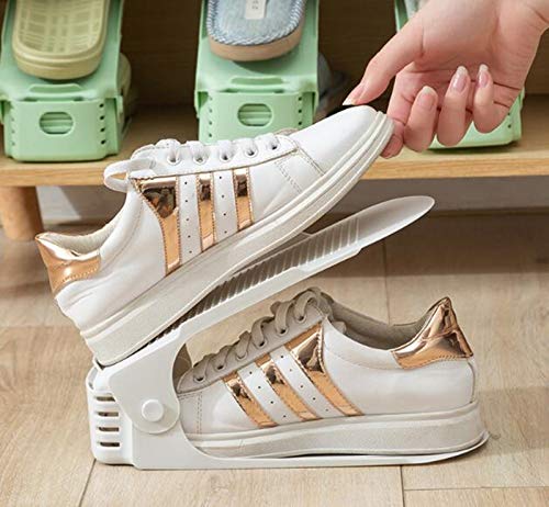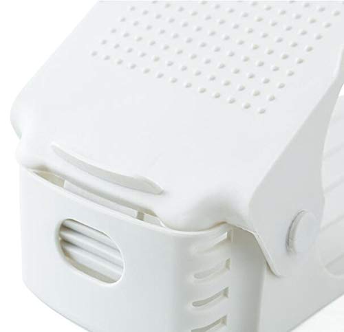 La confezione include: 6 rack di plastica bianca per scarpe a doppio strato.Dimensioni: 6x9x25 cm, la lunghezza regolabile è 8,5 cm-16 cm.