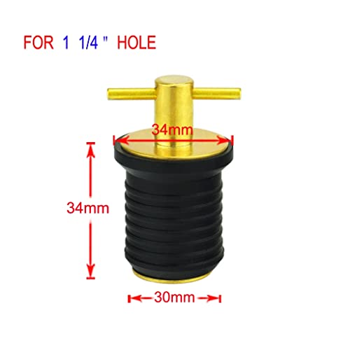 YONGERN Gomma Ottone Impugnatura a T Twist-in Scafo Livewell Tappo di Scarico for Barche Sentina for Barche Specchio di Poppa Diga Baitwell Marine Hardware (Size: for 32mm Hole)