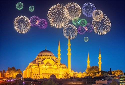 YongFoto 2,2x1,5m Sfondo Fotografico Castello Palazzo Fuochi d'artificio Cielo blu Paesaggio urbano Vista notturna Felice anno nuovo Fondale Foto Festa Bambini Boby Nozze Adulto Partito Studio