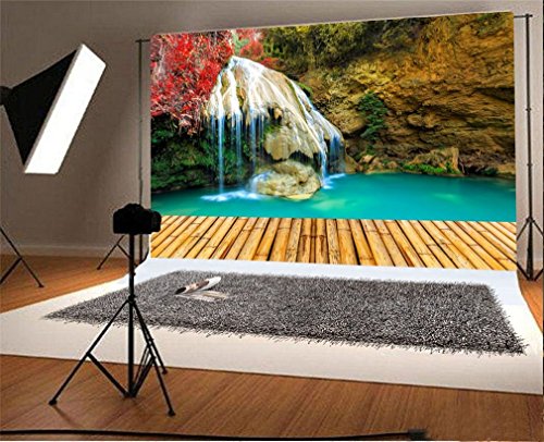 YongFoto 3x2m Sfondo Fotografico Paesaggio naturale Cascade Maple Leaf Cascata Piscina Bordo legno strisce roccia squash rocce Fondale Foto Festa Bambini Boby Nozze Adulto Partito Studio Puntelli