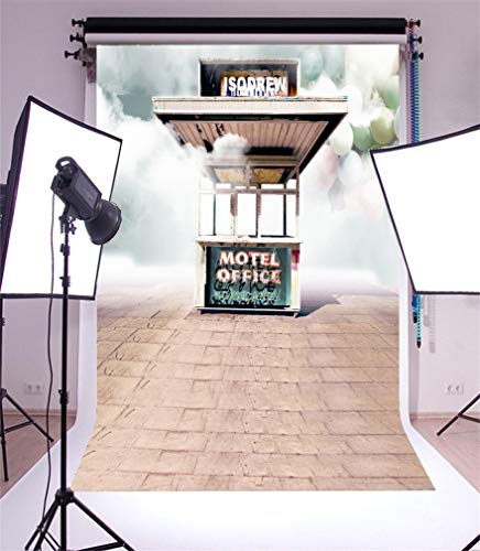 YongFoto 1,5x2,2m Sfondo Fotografico Palloncini da favola da sogno Motel Ufficio Nebbia Pavimento in mattoni d'epoca Fantasia Fondale Foto Festa Bambini Boby Nozze Adulto Partito Studio Puntelli