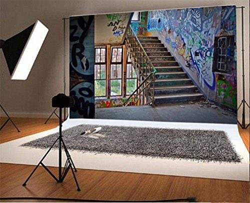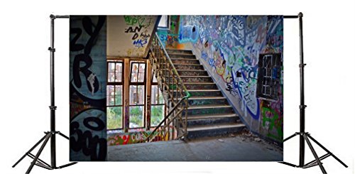 YongFoto 2,2x1,5m Vinile Sfondo Fotografico Edificio abbandonato Parete dei graffiti delle scale Fondale Foto Festa Bambini Boby Nozze Adulto Partito Studio Fotografico Puntelli