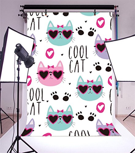 YongFoto 1x1,5m Vinile Sfondo Fotografico Bel gatto Belle orme Fondale Foto Festa Bambini Boby Partito Studio Fotografico Puntelli