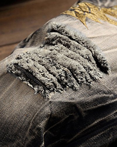 Yonglan Uomo Retro Lavaggio Fare Il Vecchio Jeans del Foro Jeans Diritti Ricami di Ali
