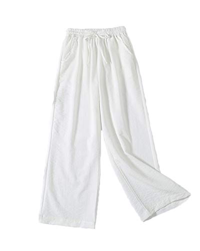 YonglanA Larghi delle Donne Estivo dei Pantaloni di Lino del Cotone Gamba Larga A Vita Alta Taglie Forti Bianco XL