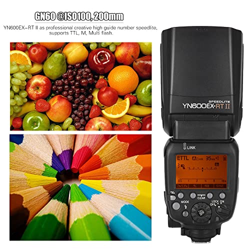 YN600EX-RT II come professionista creativo elevato numero guida Speedlite, supporta TTL, M, Multi flash. --Supports Sincronizzazione ad alta velocità Il YN600EX-RT II può realizzare TTL, flash manuale, la più alta velocità dell'otturatore sincrona è fino a 1 / 8000s.