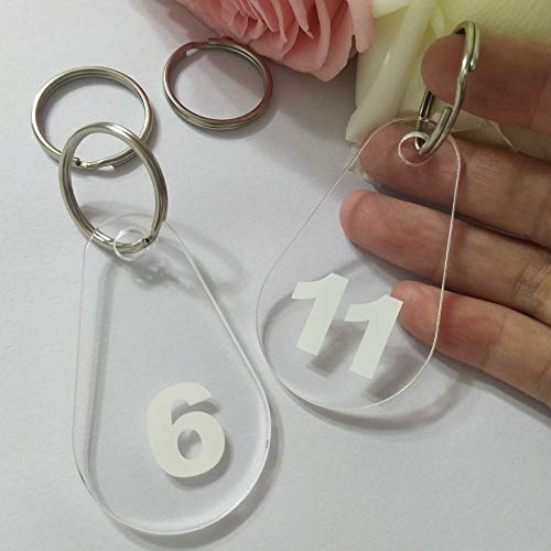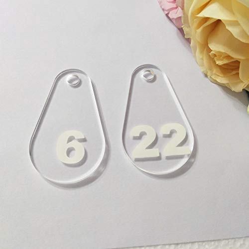 YongPan, Portachiavi numerati a forma di goccia d'acqua in acrilico trasparente, portachiavi in plexiglas con stampa numerata, per hotel, casa, spogliatoi, club, scuola (trasparente e bianco, 1-10)