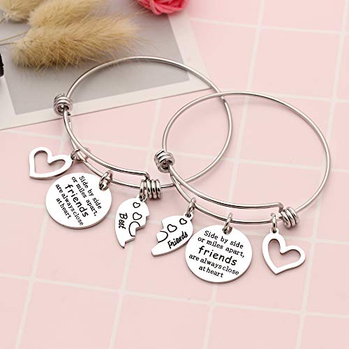 Yongui, 2 braccialetti a serpente regolabili con ciondolo, per donne e ragazze, set Side by Side or Miles Apart Friends Are Always Close At Heart
