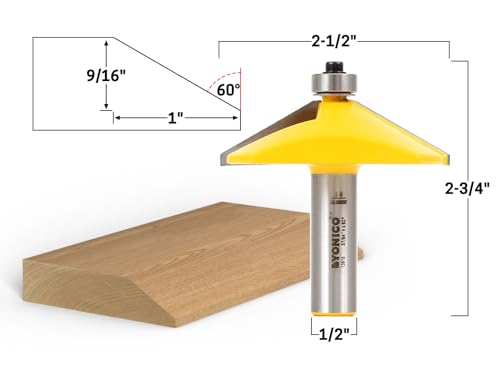 Yonico - Punta per fresatrice con bordi smussati, 13918, 60° - 9/16" larghezza- 1/2" lunghezza - 1/4" stelo