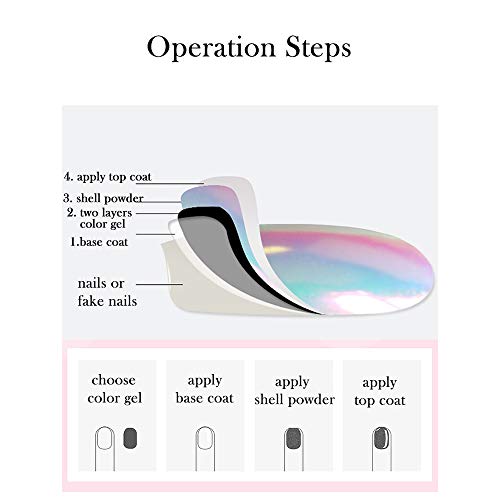Varie combinazioni: la polvere neon aurora è multicolore, è possibile ottenere diversi look utilizzando diversi smalti gel colorati (qualsiasi colore) se avete bisogno dell'effetto come nell'immagine, si prega di applicare la nostra polvere su gel bianco.