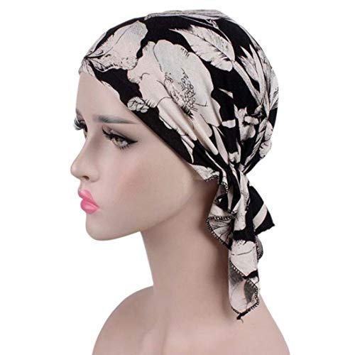 YONKOUNY Turbante Cappello Copricapo Cuffia da notte casa Elegante Cappello da Donna in Cotone Cappello per chemioterapia chemio (Nero#1)