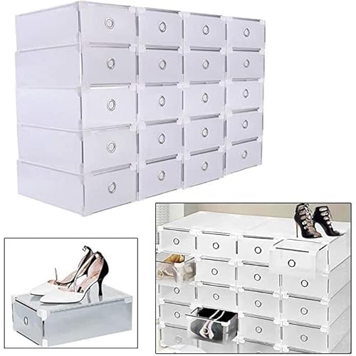 Yonntech 20pcs Scatole per ScarpeScatola per scarpe trasparente impilabile, scatola multifunzionale di scarpa in plastica, scatola per uomo e donna (31 x 20 x 11 cm)