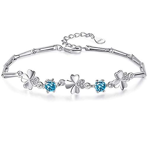 YooAi Bracciale Quadrifoglio per Donna Bracciale con Catena A Maglie con Ciondolo Portafortuna Regolabile Regalo Gioielli Blu