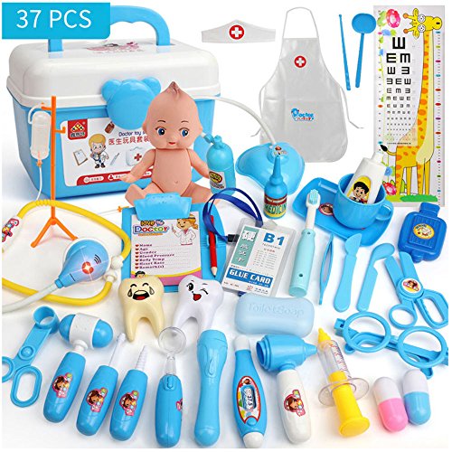 Yooap Dottore Giocattolo Apprendimento Kit Regalo Ruolo Medico e L'infermiere Imitazione per Bambini Giocattoli Strumento Medico, Ragazza e Ragazzi (Blu (37pcs))