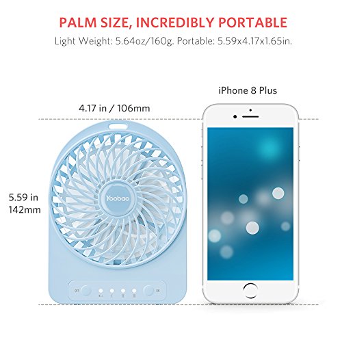 Yoobao Ventilatore da Tavolo Mini USB Ricaricabile Tabel Ventilatore Portatile Piccolo, 3300mAh Batteria, Batteria e Alimentato via USB per Casa, Ufficio, Attività all'aperto - Blu