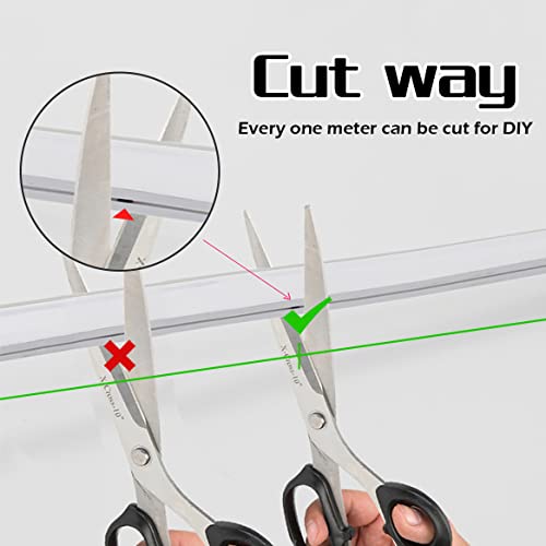【Morbido e tagliabile】 Questo striscia led può essere tagliato, la parte tagliabile è contrassegnata da punti neri sul retro della striscia al neon e può essere tagliata una volta ogni 1 m (39,37 pollici), ricordarsi di coprire la copertina dopo il taglio per evitare scosse elettriche . Si prega di non tagliare altre parti diverse dai punti neri, in modo da non danneggiare le restanti strisce luminose.